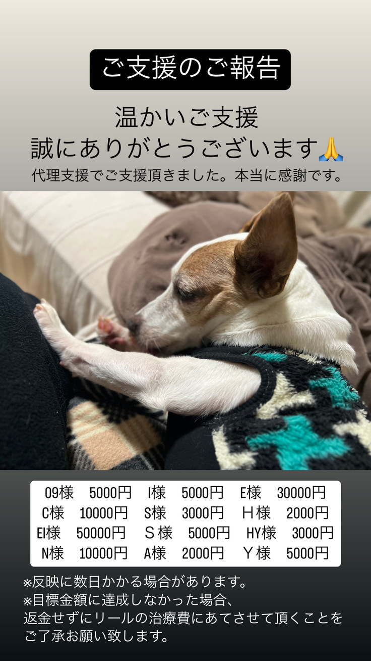 ※目標金額に達成しなかった場合、返金せずにリールの治療費にあてさせて頂くことをご了承お願い致します。