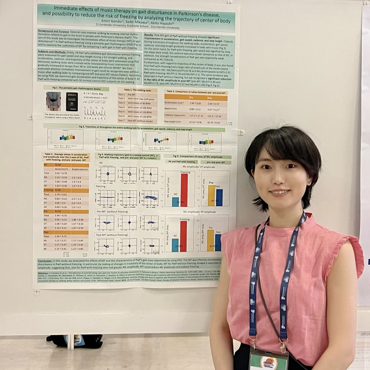 権藤は、林らとの共同研究で、パーキンソン病の歩行障害に対する音楽療法の即時効果と音楽療法がすくみを軽減させる可能性について、ポスターセッションで発表いたしました。