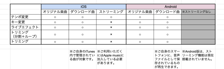 ※キー変更、ライブエフェクト、トリミングは、楽曲の権利の都合上現在ご利用いただけません。