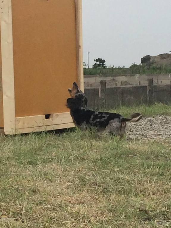 (開閉できるので、犬のレベルに合わせて扉を開けて訓練します。上級犬たちにとっては簡単ですが、13日からはじまる初心犬たちはどんな反応をするでしょうか)