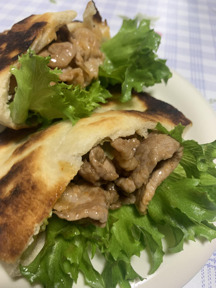 昨日のモチモチ生地で、ケバブサンドを作りました。