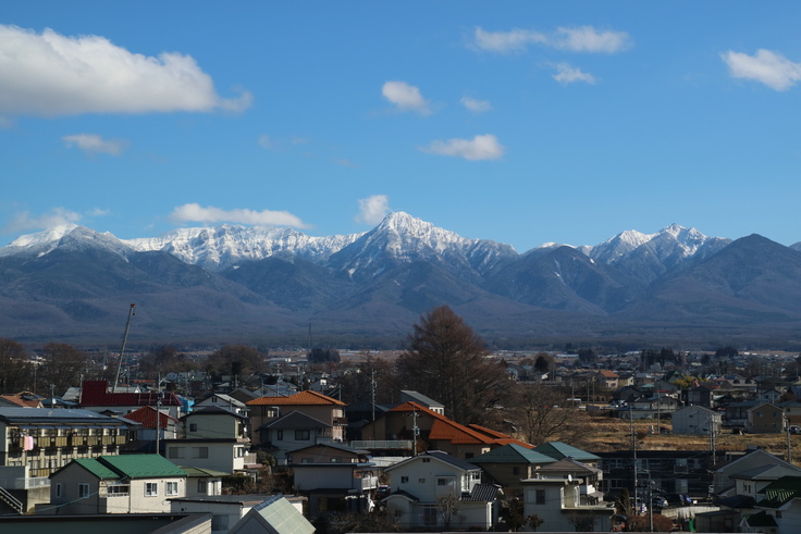 (5階から見える八ヶ岳です。久しぶりに清々しく晴れました。そして、この時期にしては雪が少ないです。)