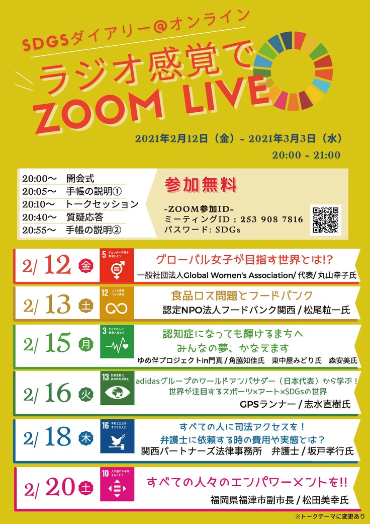 毎回異なるSDGsのテーマに合わせたトークゲストをお迎えし、お話して頂きます!詳細につきましては、以下をご覧ください!