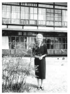 (新生療養所の宿舎を背に立つミス・パウル)
