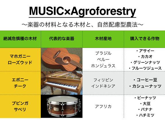 楽器製作に用いられる木材は、農業で守る事ができるのです!