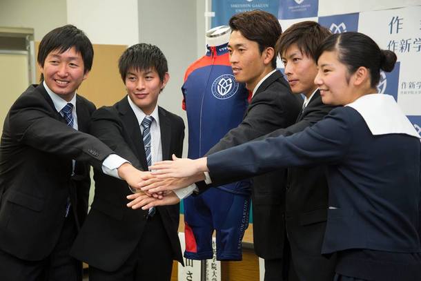 作新学院大学自転車部は、今年から始動した創設1年目の部活動です。大学財政に依存せず、学生たちが自ら活動費を調達し、競技活動を行っています。多くのスポンサーの方々や地域の方々に支えられ、競技活動にも地域貢献活動にも学業にも取り組んでおります。