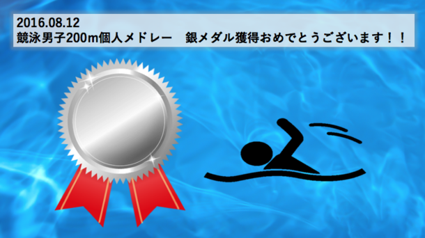 祝!萩野選手、競泳男子個人メドレー200m銀メダル獲得!