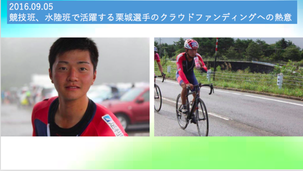 競技班、水陸班で活躍する栗城選手のクラウドファンディングへの熱意