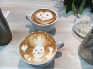 写真は、定期的にお手伝いにきてくれている綾乃ちゃんの描いたラテ。
