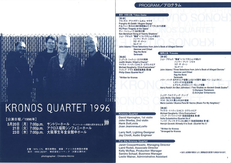 【クロノス・クァルテット秘蔵資料公開】⑩ 1996年