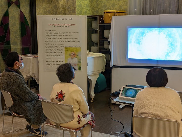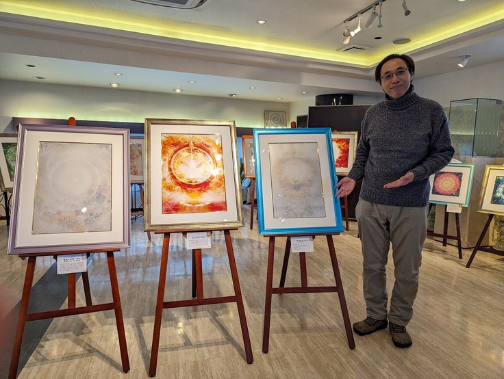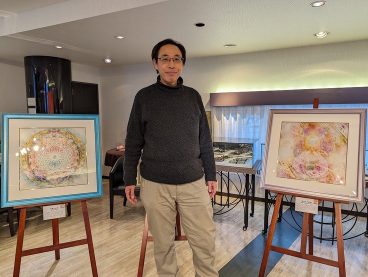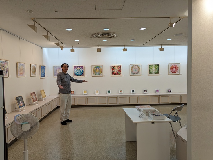 そんな活動が広がっていく中、2021年には初めての個展「とおかみえひため」を開催することができました。今までの作品からよりグレードアップした光のヤントラアートに進化し、生きるとは何かをテーマに来場した皆さんに見てもらうことができました。