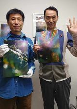 今回の展示会は当初は水野個人に話が来たものでしたが、作品が光をベースにしている事やスピリチュアルな事柄をテーマにしていることなどから、イベント等での知り合いである光の写真家冨山さんとのコラボが決まりました。