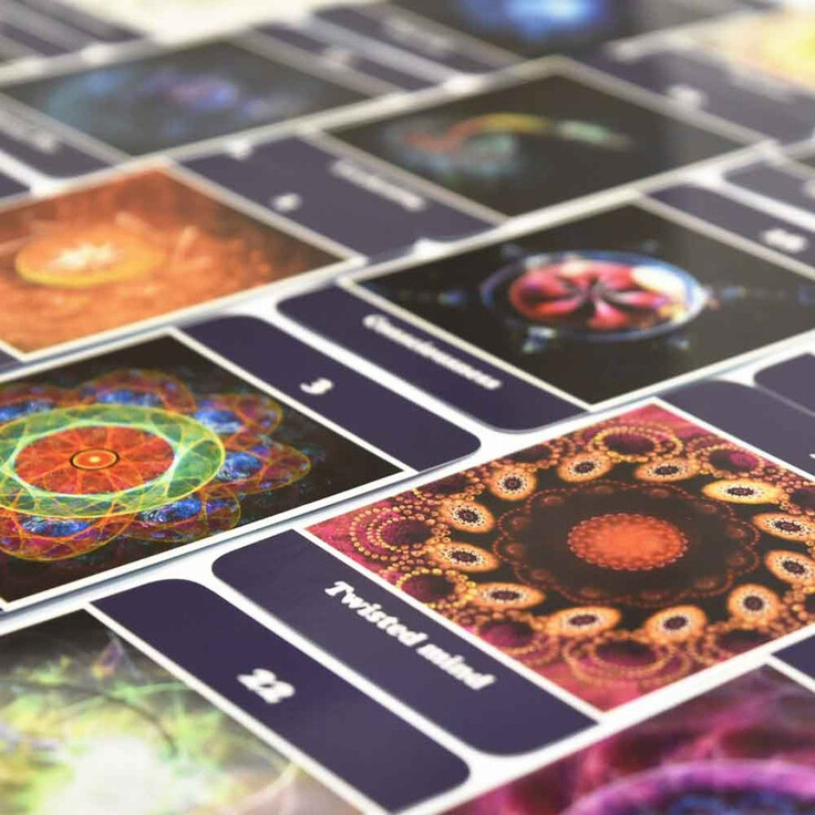 はじめはただただ描くことをして心に空いた大きな穴を埋めている毎日でした。その後さまざまな作品を制作していくにつれ、これらのアートにはメッセージ性があることに気が付き、絵の中から選んだ44枚のイメージを、セッションで扱いやすいサイズのオラクルカードとして2016年からアマゾン等で販売させてもらうこととなりました。