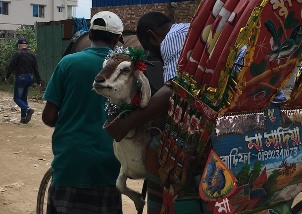 リキシャで運ばれる、、、、ヤギ!
