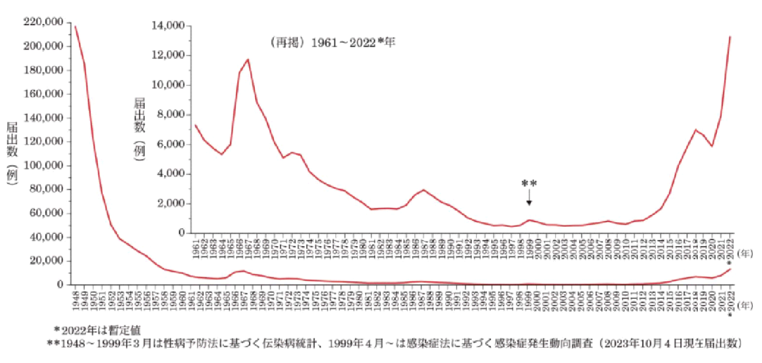 *2 山岸拓也 他.国内における梅毒症例の見積もり.厚生労働科学研究費補助金(新興・再興感染症及び予防接種政策推進研究事業)「性感染症に関する特定感染症予防指針に基づく対策の推進に関する研究」 令和2年度分担研究報告書 https://mhlw-grants.niph.go.jp/system/files/report_pdf/202019006A-buntan.pdf