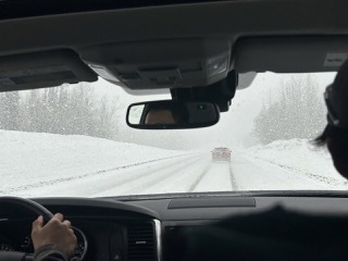 その上、雪の下はつるつるの氷のようで、スリップして側道の雪に突っ込んでいる車を4台目撃。