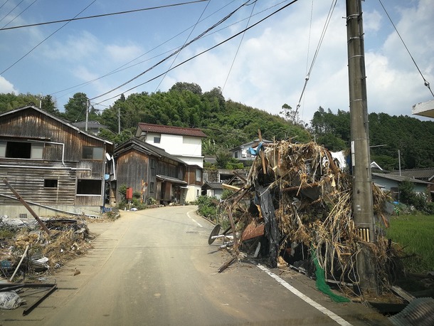 私たちは今、広島県、愛媛県で活動を行っていますが、現地では連日の猛暑の中、精神的な疲労を感じる方が増えています。地域によっては、水道が復旧しておらず、水洗トイレは使用できずにいます。さらに、臭いがきつく、粉じんも舞っている中でお風呂にも入れない状況です。この状況のため、食品衛生にも気を使わなければならず、健康状態の悪化も懸念されます。