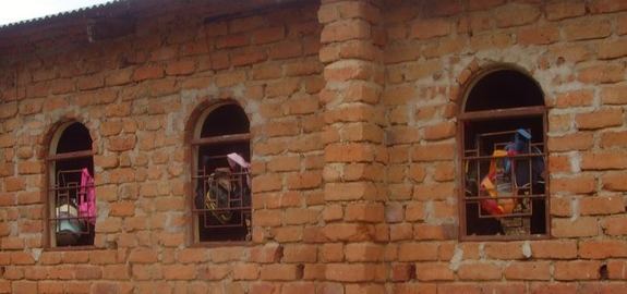 建物には3つの窓があり、子供たちが集まるメインルームが一つ あり、中の壁にはたくさんのポスターと、子供たちが描いた作品があります。床には防水マットが広げられ、子供たちが座れるようになっています。