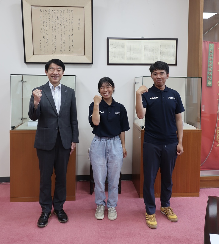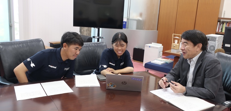 昨日、本学理事長である大竹尚登理事長に、クラウドファンディング開始とファーストゴール達成のご報告をいたしました。ヨット部員が世界に羽ばたく可能性についてお話しし、ファーストゴール達成を喜んでくださいました。