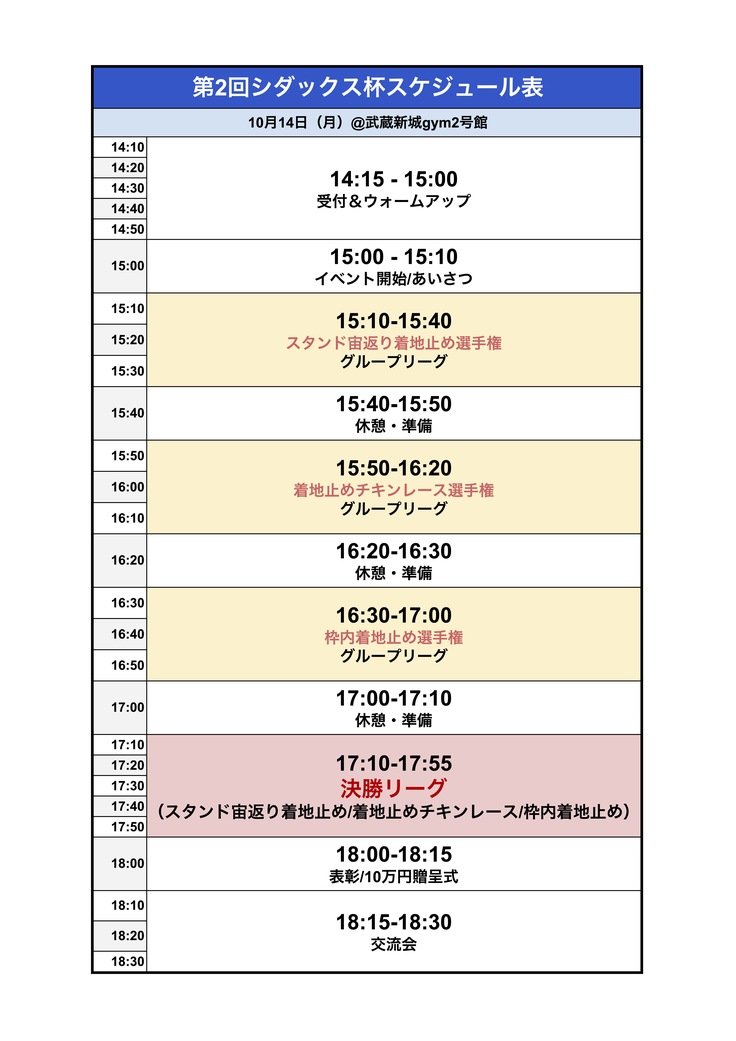 宙返り着地止め選手権などを中心に誰が見ても分かりやすく楽しめるシンプルなルールで勝者を決めます!
