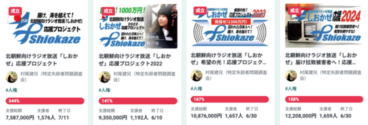 ・資金使途:北朝鮮向けラジオ放送「しおかぜ」の放送1ヶ月分