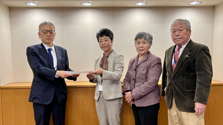 令和7年3月6日、NHK(日本放送協会)小池英夫専務理事(左)と特定失踪者家族会吉見美保副代表、竹下珠路事務局長、特定失踪者問題調査会増元照明副代表、幹事長村尾建兒がNHK放送センターにて面会し、稲葉延雄会長宛に要請文書を提出しています。現在、面会から約3ヶ月が経過していますが、NHK(日本放送協会)稲葉会長からの回答は全く来ていません。