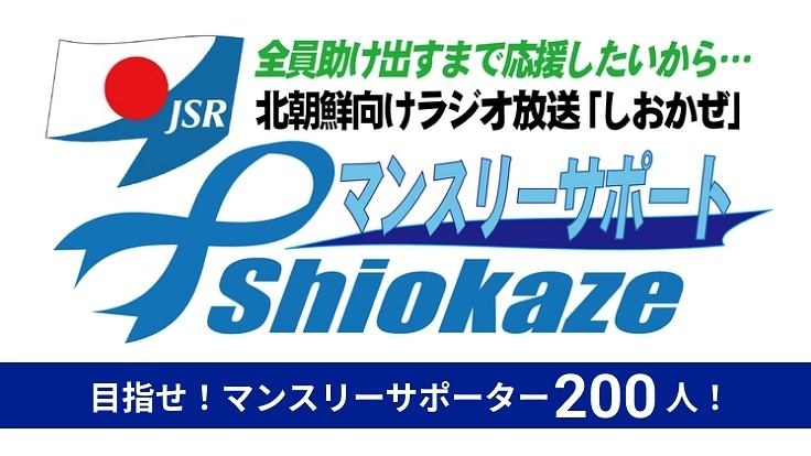 特定失踪者問題調査会が制作、運営する、北朝鮮向けラジオ放送「しおかぜ」の1ヶ月分送信費用として使います。