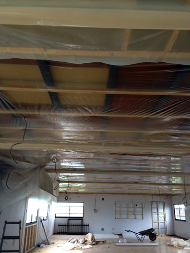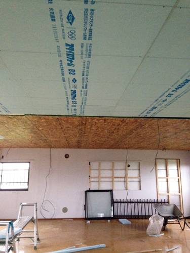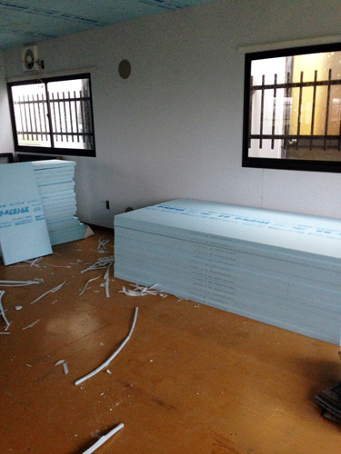 次に、ブルーのものが断熱材ですが、これを天井、壁、床、全てに貼ります。