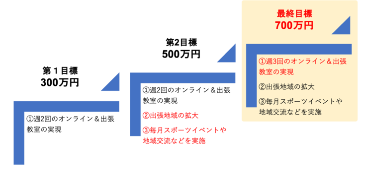 ※第1目標の300万円では、この内、週2回のオンライン&出張教室の実現のための費用として充てさせていただきます。