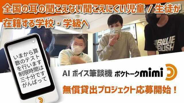 声を文字に変換してくれるAIボイス筆談機「ポケトークmimi」。NPO法人Silent Voiceでは、耳の聞こえない聞こえにくい児童/生徒の学校生活の中で”分かる”体験を作りたいという想いから、ポケトークmimiを大阪府下の学校へ無償貸出するプロジェクトを株式会社ソースネクスト様とともに9月から行っております。さらには10月からプロジェクトの対象を広げ、全国の学校への無償貸出を進めております。