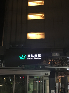 前述のテレビ番組が終わったのは18時30分。外はすっかり暗くなっていましたが、その後すぐに恵比寿へ向かい駅からスタートしました!夜さんぽのはじまりです♪