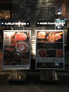さらにまっすぐ進むと焼肉屋としゃぶしゃぶ屋のメニュー看板が出ていました。通りの向こうには雰囲気の良さそうなイタリア料理店も見えます。