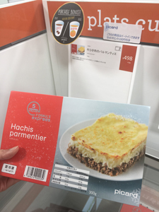 フランスの家庭料理で出るという牛ひき肉の食品と美味しそうなピザ、その他デザートなどついつい5品ほど購入!