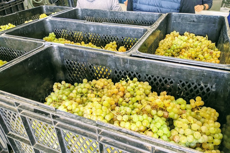仕込みを待つ白ぶどう。品種は「酒の神」という名前のバッカス