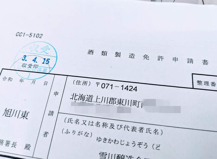 酒類指導官が常駐されているのは旭川中税務署ですが(これまでいろいろと相談に乗っていただいておりました)、東川町の担当税務署は旭川東税務署のため、申請書は旭川東税務署へ提出しております。