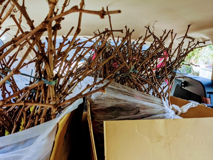 昨日になりますが、苗木をお願いしていた余市の田崎ヴィンヤードで苗木を受け取ってまいりました。当初の注文より本数が変動して、ミュラー・トゥルガウ 200 本、ソーヴィニョン・ブラン 200 本、ツヴァイゲルト 50 本、合計 450 本となりました。