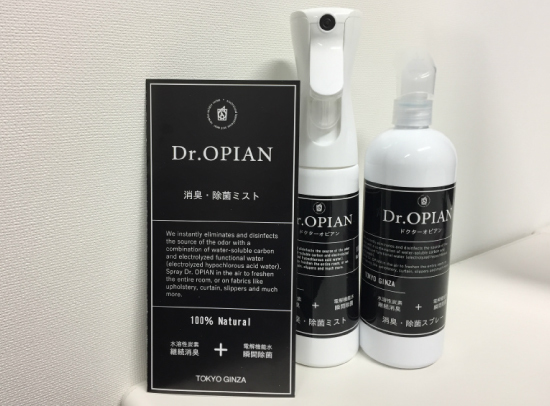 Dr.OPIAN(ドクターオピアン)は小豆から作られた水溶性炭素とお塩から作られた電解性能水を併せた、消臭・除菌ミストです。