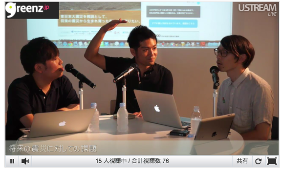 本日(8/10)の17時〜18時半のあいだ、greenz.jpのUSTREAM放送「greenz LIVE!!!」に代表の横尾とともに出演しました。