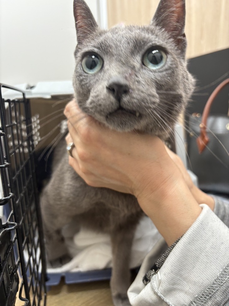麻酔でまだ少しゆらゆらしておりましたが、手を差し出すと嬉しそうに顔をこすりつけてくれました。