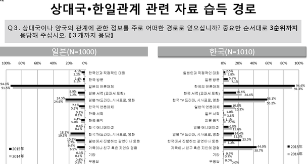 次は、2015年に行った日韓共同で実行した認識調査の結果です。