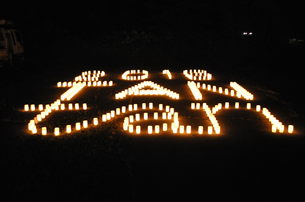 日が暮れると心配された雨も奇跡的にやみ、ボランティアの方々の手によってキャンドルに火が灯りました。出店が始まると町の人々も集まり、コンサートが始まる頃には席が足りなくなってしまうほどでした。