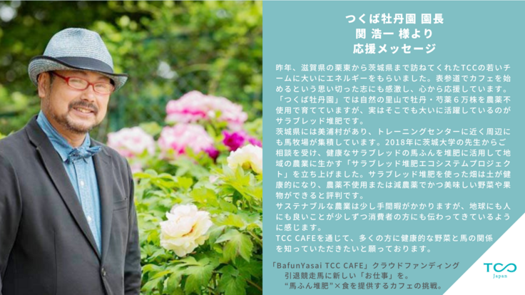 続いて、つくば牡丹園 関園長より、素敵な応援メッセージをいただきました。