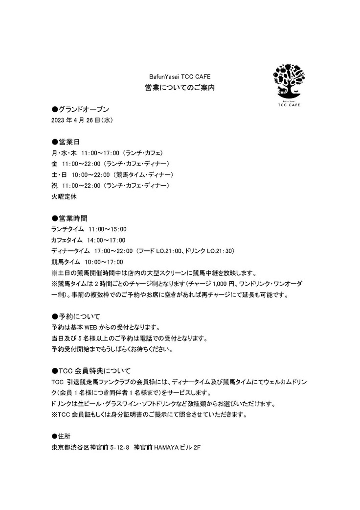 営業日や営業時間、予約方法、TCC会員様 限定特典についてもご案内します。