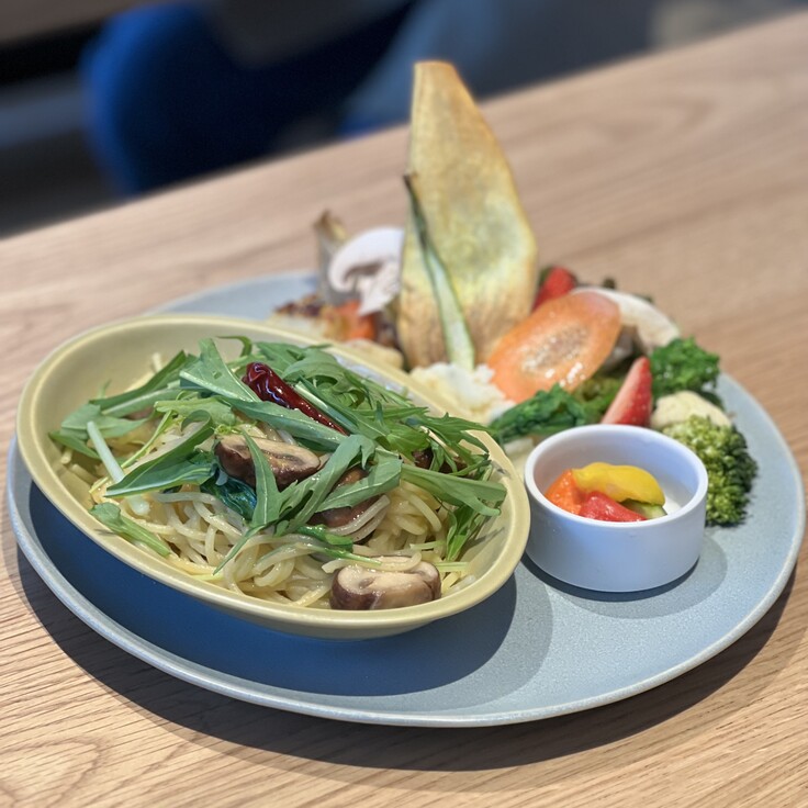 15品目の旬のBafun野菜をそれぞれにあった調理方法で仕上げ、選べる4種のメインと共にワンプレートで。