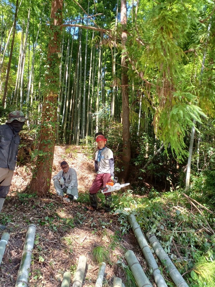 この秋、長期間の竹灯籠展示イベントの企画がおこり、残暑が残る猛暑な日に、大谷地区内で2m物を150本!を目標に竹の伐採がスタート!竹林を所有いただいてる方には、伐採を快く受け入れていただき、竹林整備も含めて、活動を進めます