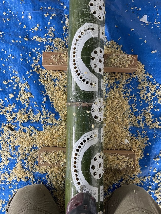 仕事内容は、径の違う竹の穴開け用ドリルを付けたインパクトドライバーで、指定された下絵のとおりに竹に穴を開けるだけ