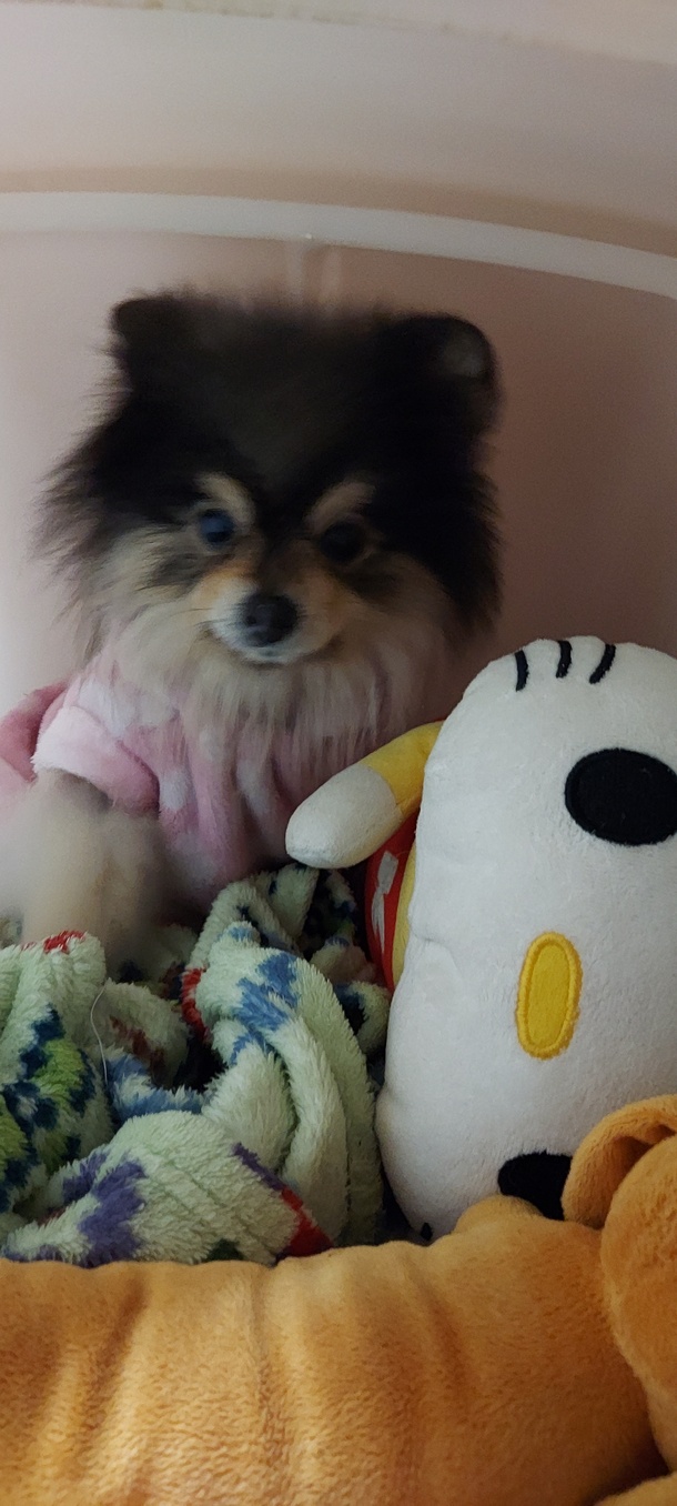 ごはん食べて満足で、自分の寝床に行ったティアラ❤