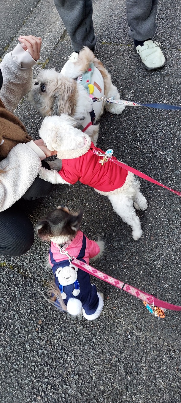 お友達と仲良く、お散歩お菓子の争奪戦中💦❤
