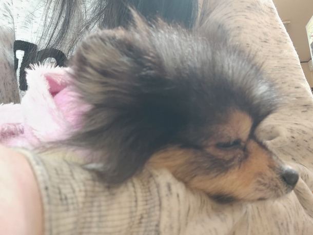 朝ごはん食べませんでした。私が帰って来ると、胃が痛い時のポーズして、震えてた。抗生剤と、整腸剤を、チュルに混ぜたけどたべず、びっくり、ささみのお菓子足して混ぜたけど、食べず、手渡しで何回チャレンジして、やっとお薬のめました。