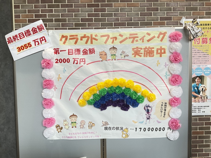 現在当院外来付近に設置しております特設ブースの後ろには目標金額の達成度を表現する虹がかかっております。今回17,000,000円達成に際し、4本目の虹がかかりました。